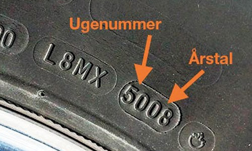 Eksempel: 5008 betyder, at dækket er fremstillet i uge 50 år 2008.